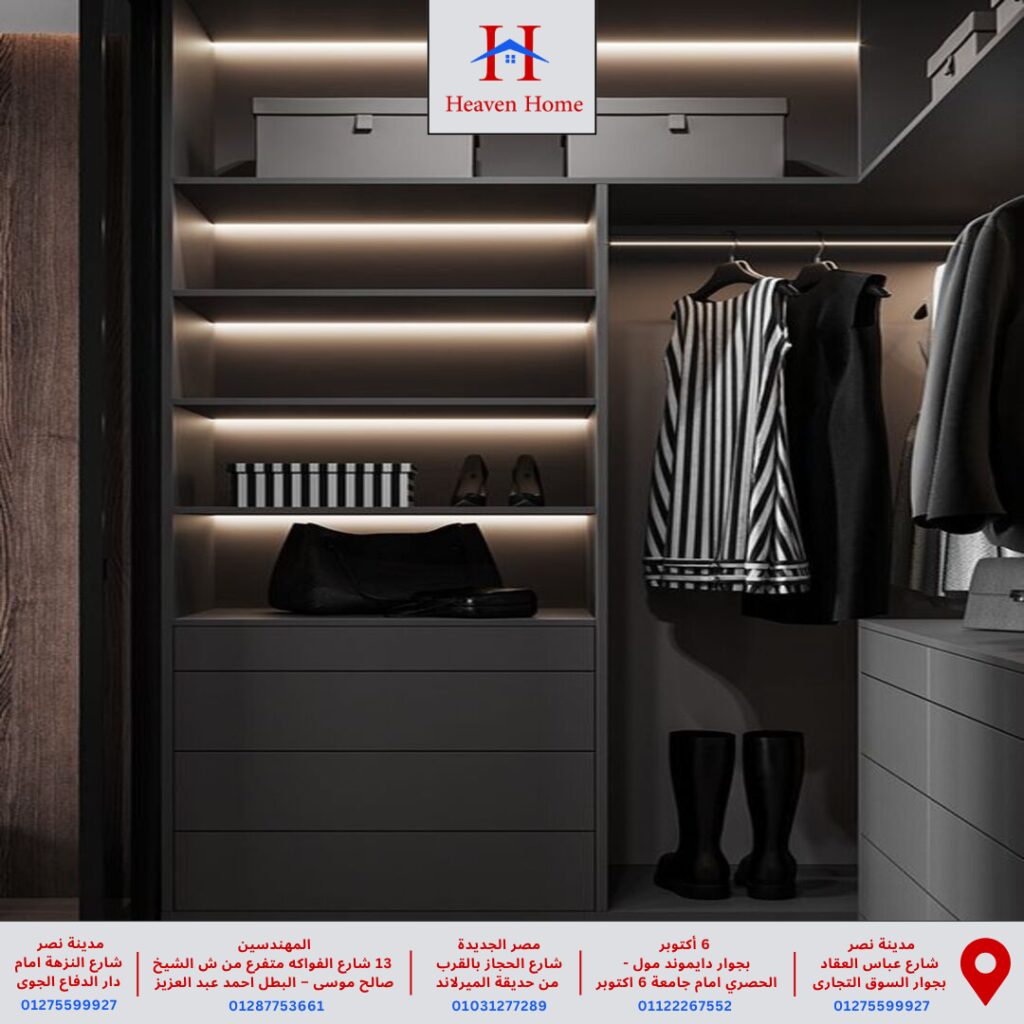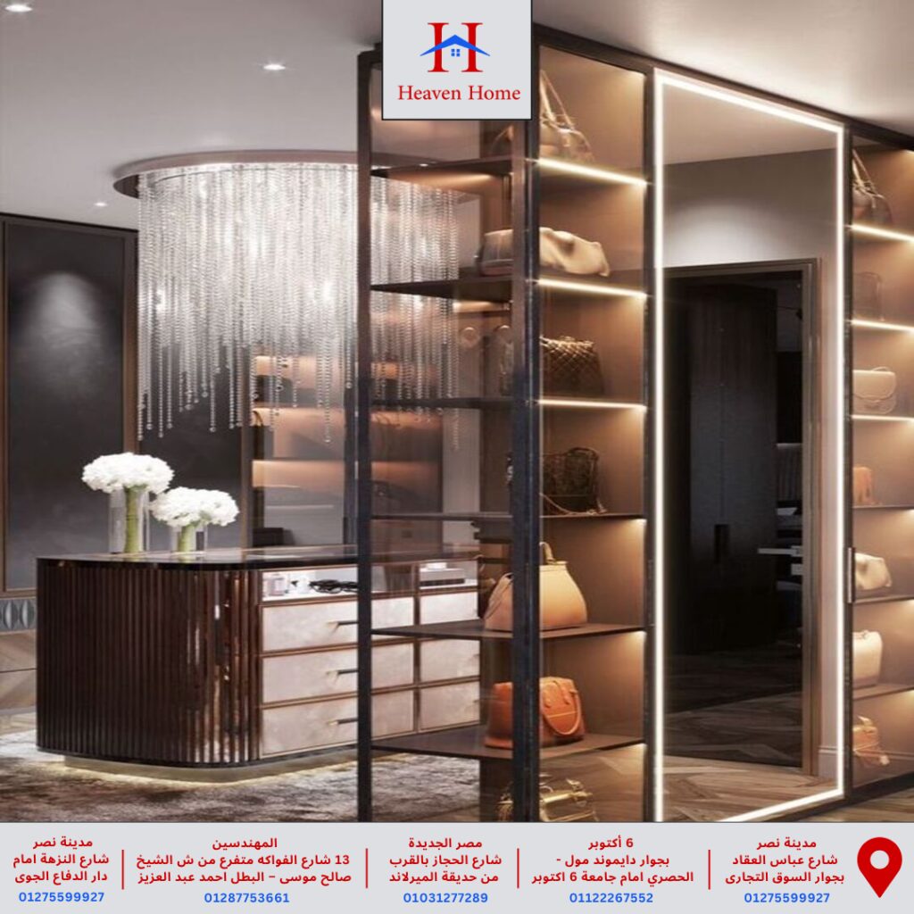 اختار من أجدد تصاميم غرف الدريسنج روم من هيفين هوم، مناسبة للبيوت العصرية تنسيق دقيق بين الأدراج، الأرفف، ووحدات التعليق لاستغلال مثالي للمساحة تصميم يجمع بين الأناقة والعملية علشان يخلي يومك أسهل وأشيك